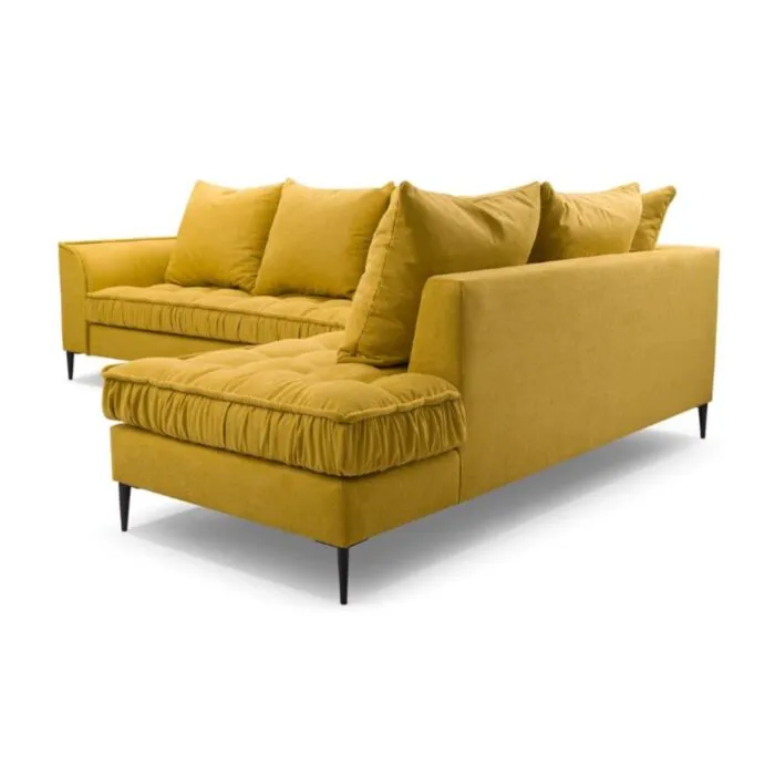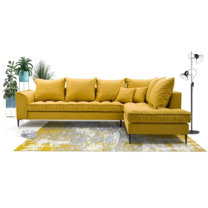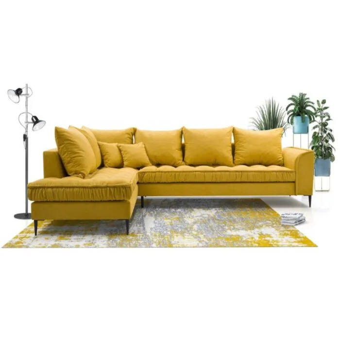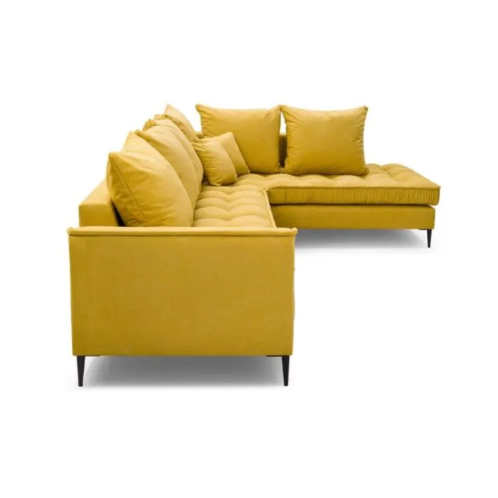 Kotna sedežna garnitura TITAN je praktična in udobna. Popestrila bo vaš dnevni prostor s svojim modernim dizajnom, ter elegantnimi črnimi nogicami. Na voljo v različnih barvah blaga. Vzmetena je z valovitimi vzmetmi.