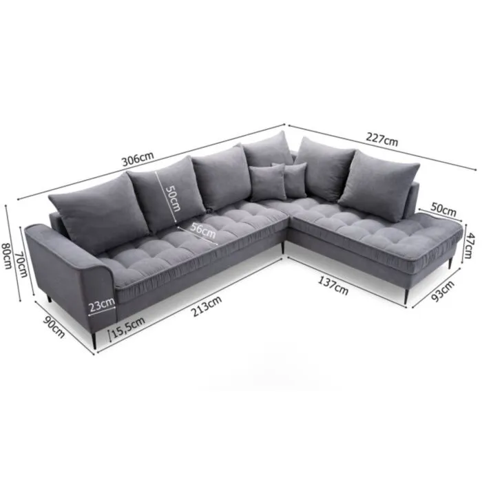 – D: 306 cm x G: 227 cm x V: 80 cm