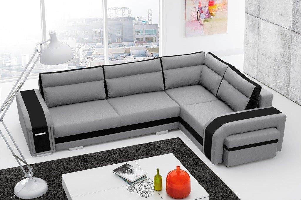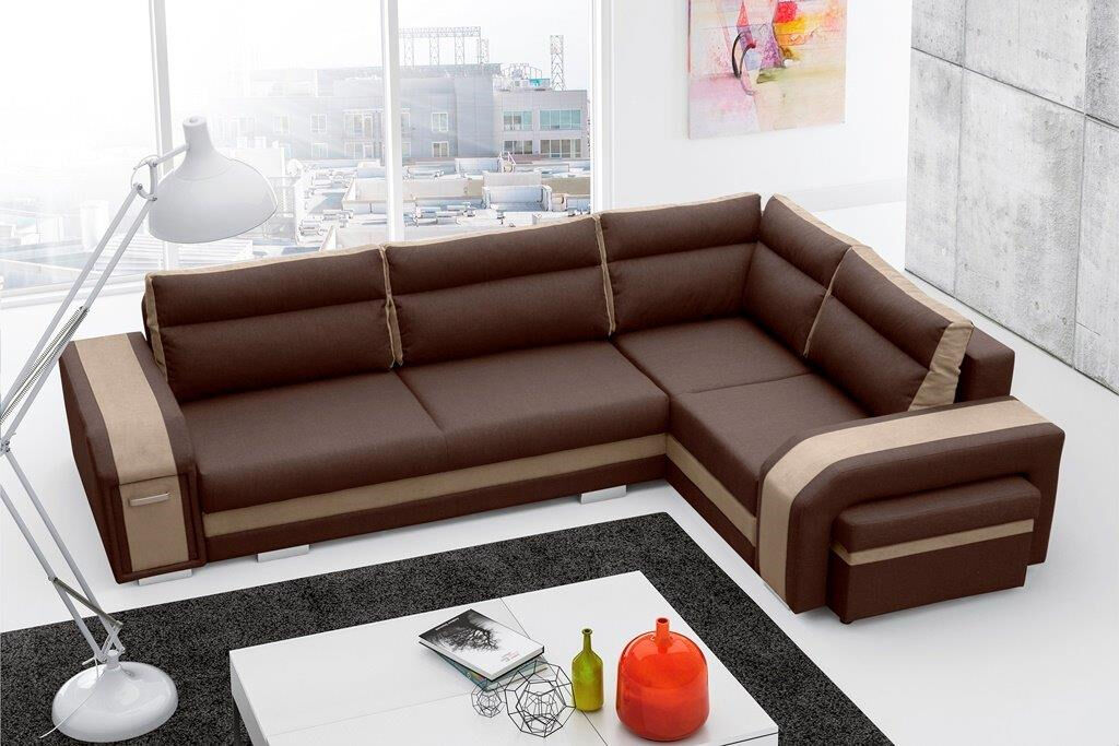 Kotna garnitura TORNADO 3 je kotna sedežna garnitura, katera je narejena iz vrhunskih materijalov. Sedežna ima pomožno ležišče, v otomanu predal, v rokonaslonih pa predalnik in praktičen tabure, kateri ima možnost odpiranja. Sedežna je vzmetena z valovitimi vzmetmi. Garnitura ima levi ali desni kot, katerega morate izbrati.