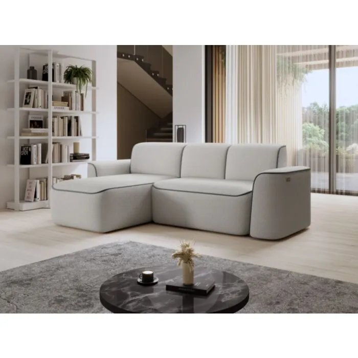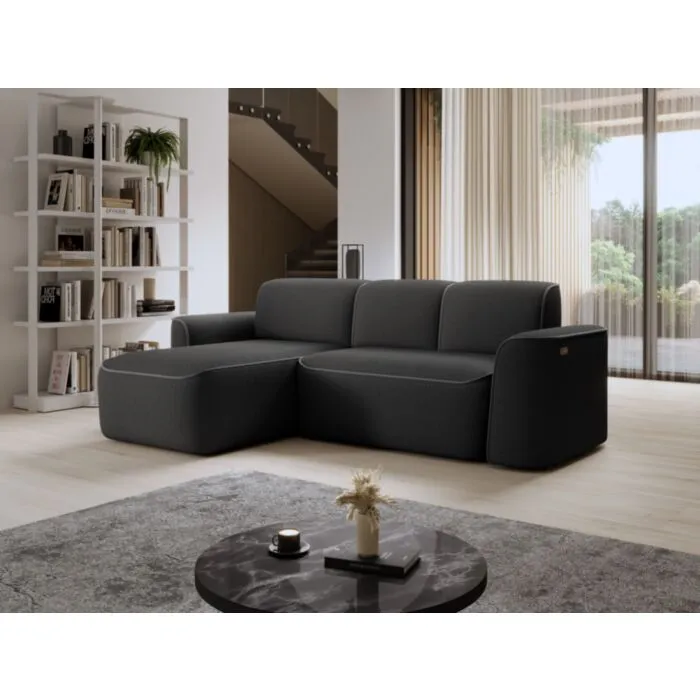 Kotna sedežna garnitura UMANA 2, je mešanica moderne elegance in neprekosljivega udobja, popolna za vašo dnevno sobo. Skrbno je bila zasnovana tako, da harmonično združuje moderno eleganco z udobjem. Ni le kos pohištva, ki navdušuje s svojim dizajnom, temveč je tudi praktičen zaradi naprednega mehanizma Relax z električnim iztegom.