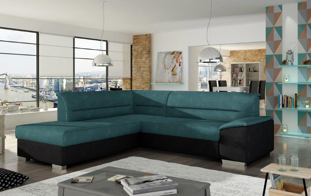 Kotna sedežna garnitura VERY je odlična garnitura po odlični ceni. Izdelana je iz kakovostnega blaga. Sedežna je vzmetena z valovitimi vzmetmi, ter se raztegne v dodatno ležišče z delfin mehanizmom. Sedežna vsebuje tudi zaboj za shranjevanje. Dizajn, kateri vas bo prepričal.