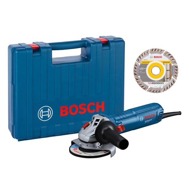 Kotni brusilnik GWS 12-125 Professional je primeren za brušenje in rezanje kovin, ploščic in opeke. Združljiv je z nastavkoma za odsesavanje prahu GDE 125 EA-T Professional in GDE 115/125 FC-T Professional.