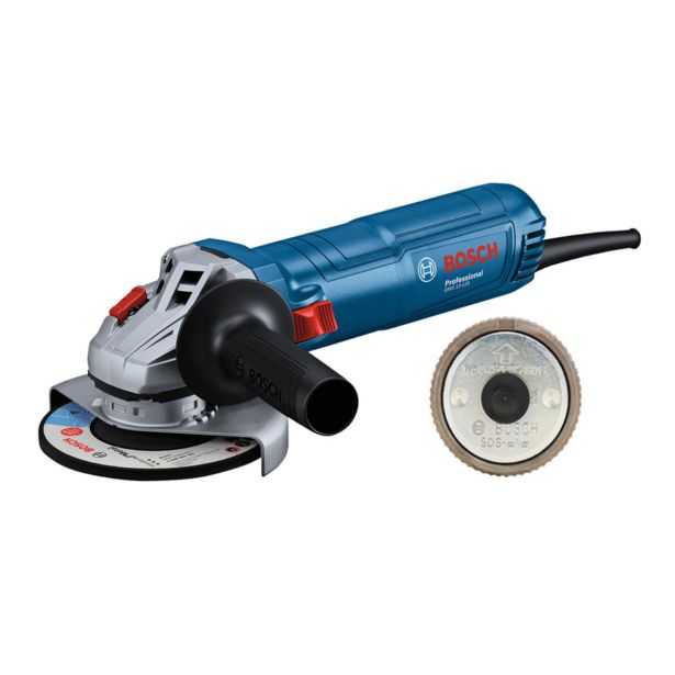 Kotni brusilnik GWS 12-125 Professional je primeren za brušenje in rezanje kovin, ploščic in opeke. Združljiv je z nastavkoma za odsesavanje prahu GDE 125 EA-T Professional in GDE 115/125 FC-T Professional.