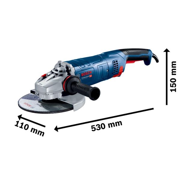 Dodatni ročaj s sistemom Vibration Control še poveča udobje uporabnika. Zaščita pred ponovnim zagonom prispeva k varnosti uporabnika, zaščita pred preobremenitvijo pa orodje izklopi, kadar pride do podaljšane preobremenitve. GWS 24-230 ponuja izjemno zmogljivost pri delu s kovino. Nazivna moč: 2.400 W