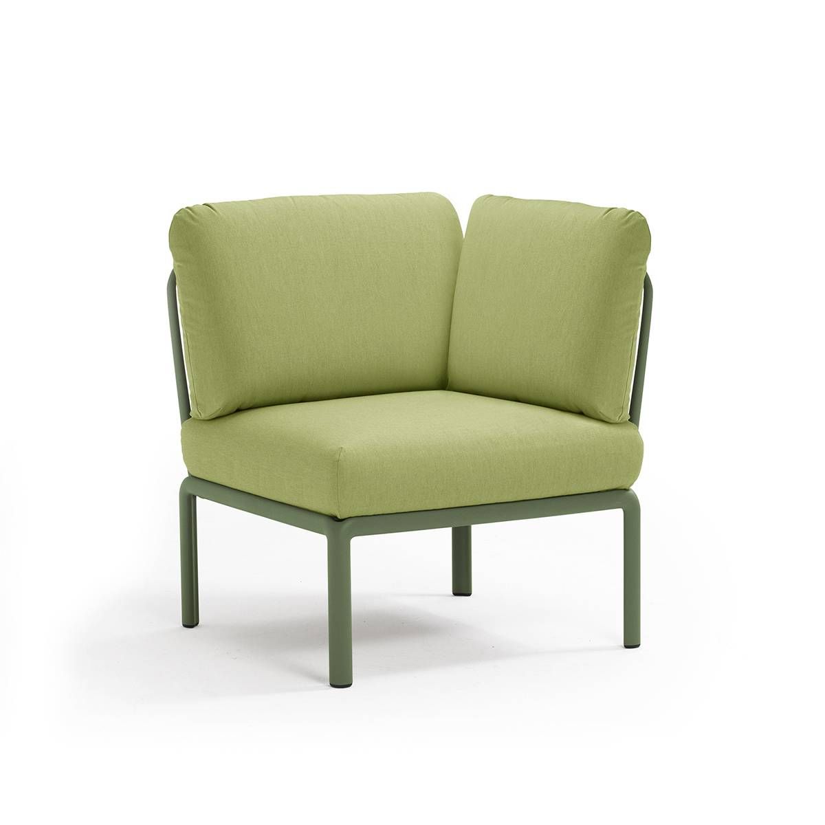 Kotni element KOMODO, za sestavo svoje poljubne garniture ter za poljubno kombinacijo elementov iz serije KOMODO. Barva ogrodja: agave s poljubno barvo blazine. Služi lahko kot kotni garniture.