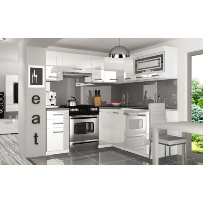 Eleganten kotni kuhinjski blok MARIJA, ki bo zagotovo poživel vašo kuhinjo. Dobavljiv je v štirih različnih barvah kuhinjskih elementov. Delovni pult ni v enem kosu. Možnost je naročiti sistem za mehko zapiranje vrat. Predali pa nimajo možnosti mehkega zapiranja.V ceno je vključen le leseni del kuhinje. Debelina kuhinjskega pulta je 3cm. Globina spodnje omarice 45 cm.