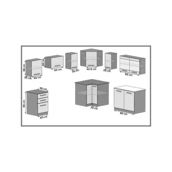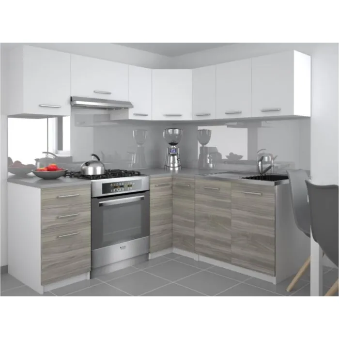 Popestrite izgled svoje kuhinje s kvalitetnim kotnim kuhinjskim blokom MIHA 190×170. Dobavljiv je v treh barvah kuhinjskih elementov. Možnost je naročiti sistem za mehko zapiranje vrat. Predali pa nimajo možnosti mehkega zapiranja.V ceno je vključen le leseni del kuhinje. Delovni pult ni v enem kosu. Globina spodnje omarice 45 cm.