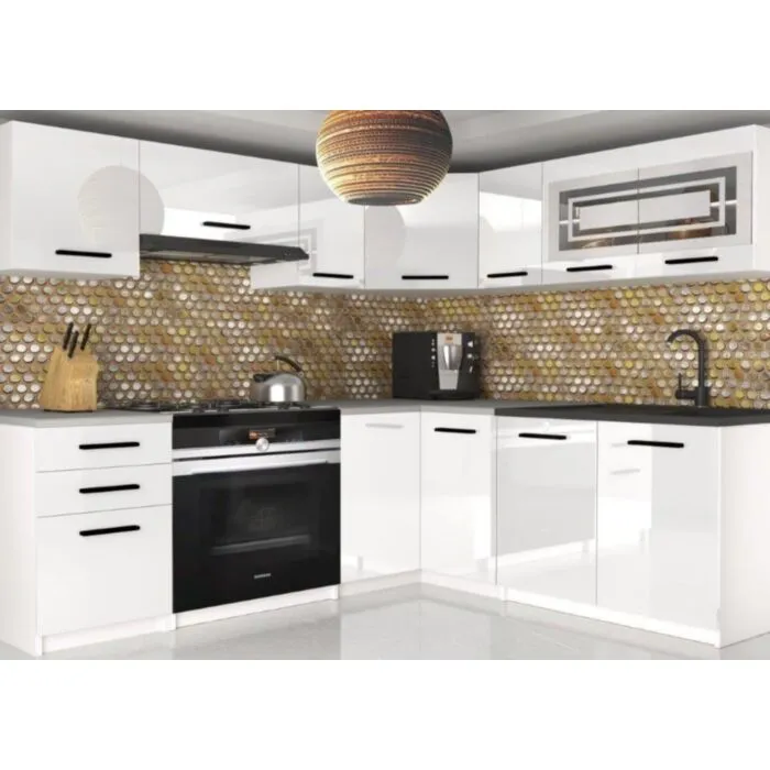 Eleganten kotni kuhinjski blok SMART 2, ki bo zagotovo osvežil vašo kuhinjo. Dobavljiv je v treh različnih barvah kuhinjskih elementov. Delovni pult ni v enem kosu. V ceno je vključen le leseni del kuhinje. Možnost je naročiti sistem za mehko zapiranje vrat. Predali pa nimajo možnosti mehkega zapiranja.Debelina kuhinjskega pulta je 3cm. Vsi ročaji so v črni barvi. Globina spodnjih omaric je 45 cm.