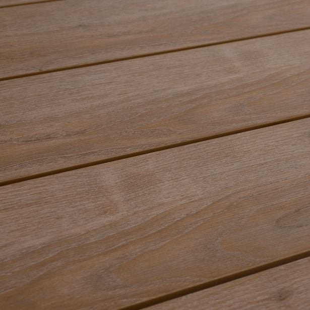 Vrtna miza Clara očara s svojim elegantnim dizajnom in praktičnostjo. Zasnovana za sprejem do 8 gostov, miza je sestavljena iz aluminijaste konstrukcije in sintetičnega lesenega pladnja. Ta pladenj dodaja naravni čar celotnemu izdelku, brez potrebe po vzdrževanju tradicionalnega lesa. S svojo povsem aluminijasto konstrukcijo je miza lahka, enostavna za premikanje ter odporna proti vlagi in rji, kar omogoča, da jo uporabljate sezono za sezono.