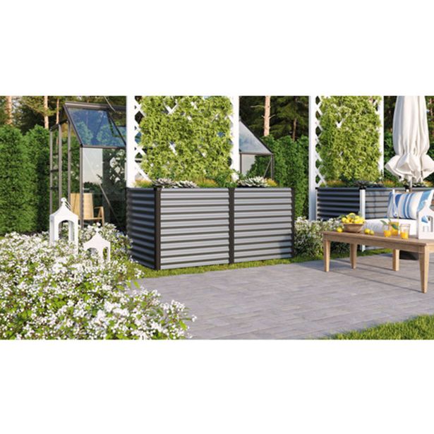 Priljubljena dvignjena postelja Vitavia je zdaj na voljo tudi v klasični pravokotni obliki: pravokotne plošče Zincalume so na vogalih povezane z visokokakovostnimi trakovi iz eloksiranega aluminija in stabilizirani na straneh.