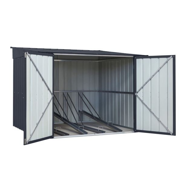 Premium garaža za kolesa se dobavi v kompletu brez dna.