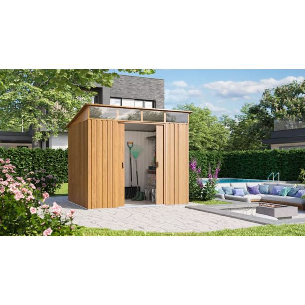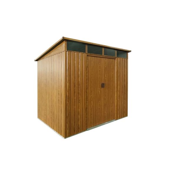 Z lopo za orodje Lübeck 89 – videz lesalahko lastniki vrtov ustvarijo red na vrtu – in enostavno spremljajo svoje skladiščeno blago: svetlobni pas med streho in vrati na sprednji strani prepušča dnevno svetlobo, stranice, visoke od 1,70 do 2,03 m, pa omogočajo večino uporabniki Enakomerna višina prostora v območju premikanja orodjarne.