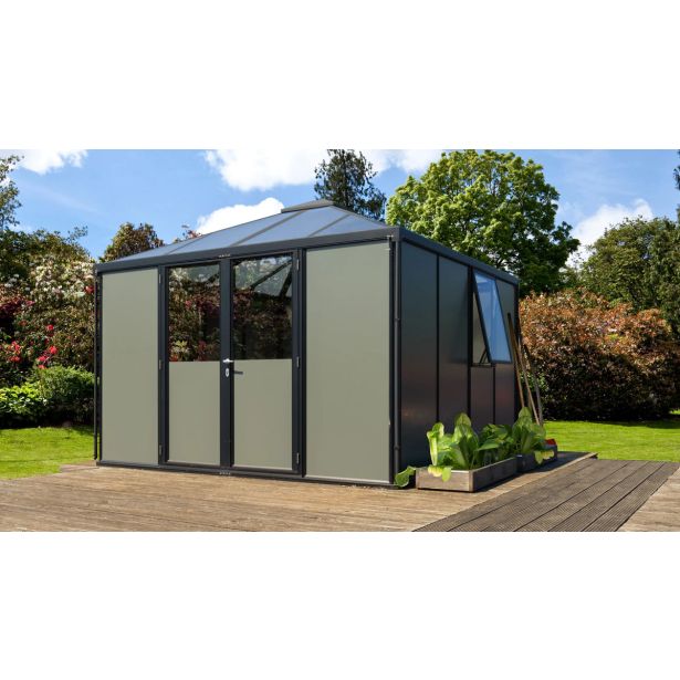 Visokokakovosten skladiščni prostor ponuja popolno mešanico diskretnosti, estetike in dnevne svetlobe. Robustni in fini obenem tvorijo tanek okvir vijačeni dvojni okvirni profili iz eloksiranega ali prašno lakiranega aluminija. V strehi je obložen z UV-prevlečenimi votlimi stenskimi ploščami, ob straneh s stabilnimi aluminijastimi sendvič ploščami v mat žajbelj sivi barvi in ??stranskimi okni iz kristalno čistega varnostnega stekla (ESG).
