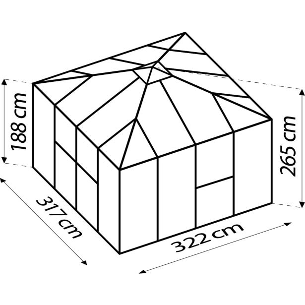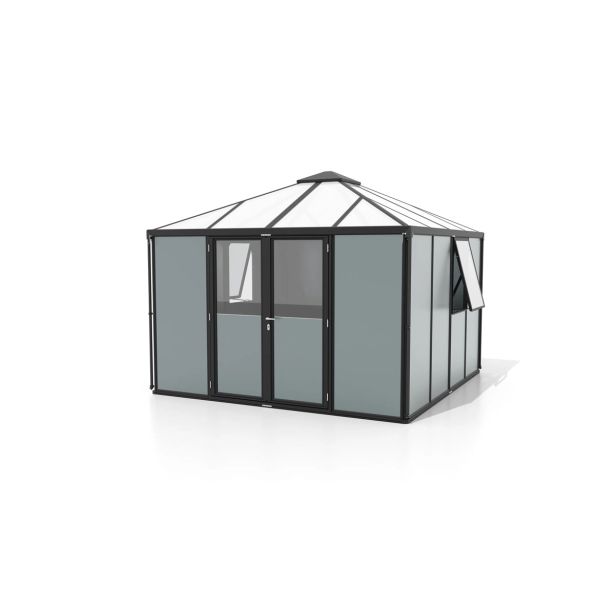 In veliko se da pospraviti, saj 10,2 kvadratnega metra obdajajo 1,88 m visoke stranice. Nad njim sedi do 2,65 m visoka paviljonska streha, ki ponuja pogled na pravo zvezdnato nebo. Universe je dobavljen kot komplet in brez tal.