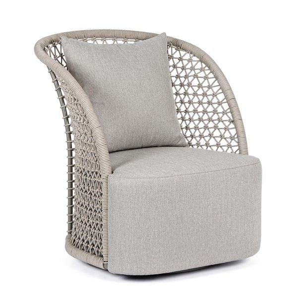 Bizzotto Homemotion Cuyen je fotelj rustikalnega dizajna s sodobnim pridihom. Struktura je iz aluminija peščene barve, prekritega z olefinsko vrvjo, sedež pa je iz blaga. Ta fotelj je idealno dopolnilo za stilsko opremljanje zunanjega okolja. Njegova trdna in lahka aluminijasta struktura se zlije s tkanjem olefinske vrvi, kar daje okolju etnični pridih. Rezultat je edinstvem in sodoben slog, ki ukrade pogled. Ukrivljenost naslonjala omehča obliko, zaradi česar je mehka in prijetna na pogled. Plus: fotelj je vrtljiv.