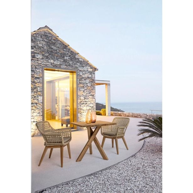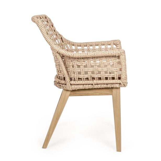 Madison stol z rokonasloni v elegantni bež barvi je izdelan iz kvalitetnih materialov, s svojim videzom pa bo izgledal odlično na vašem vrtu ali terasi. Kombinira se skupaj z vrtno mizo Palmdale Carbon. Ogrodje stola je narejeno iz aluminija z nanosom poliestra za dodatno obstojnost. V paketu je vključena blazina z odstranljivo prevleko, izdelana iz kvalitetnega in koži prijaznega polipropilena. Noge stola so izdelane iz obstojnega tikovega lesa s certifikatom, izvor Indonezija. Dimenzije D 46 x Š 46 x V 82 cm.