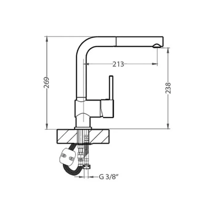 Kuhinjska armatura AZ – P je visokotlačna in izvlečna. Armatura je kromirana. Dimenzija je 21,3 x 23,8 cm.