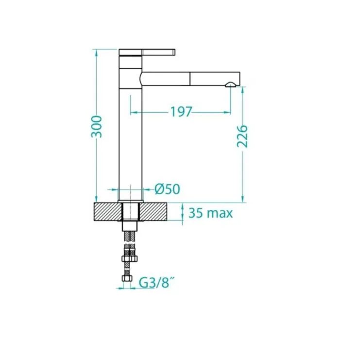 Kuhinjska armatura ZI je iz kroma in granitala. Armatura je visokotlačna. Dimenzije so 19,4 x 20,2 cm.