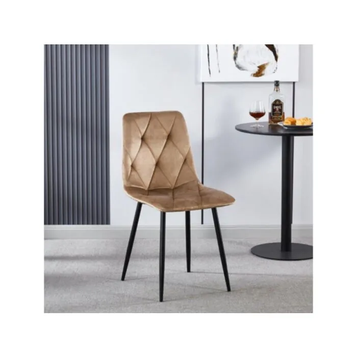 Kuhinjski stol MILA velvet bež je narejen iz tkanine velvet, zaradi katere je izjemno mehek in prijeten na dotik. Material je izjemno praktičen ter enostaven za čiščenje. Tkanina velvet je ena izmed bolj kvalitetnih tkanin na trgu. Zaradi svoje goste tkanine zagotavlja, da se živalske dlake ne oprijemajo na površino. Na svetlobi spremeni odtenek ter ne vpija vode. Tkanina je eko prijazna ter prijazna do živali. Tkanina je sestavljena iz gostih, enakomernih rezanih vlaken.