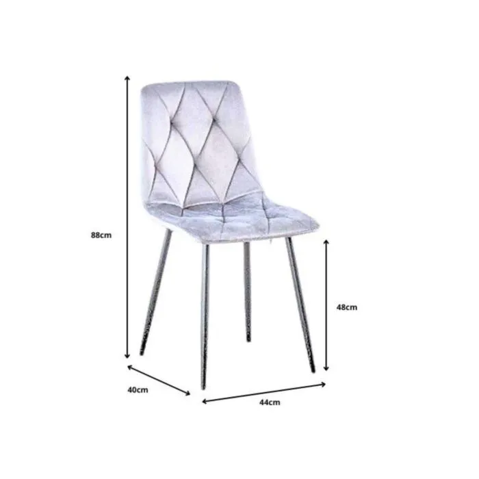Jedilni stol MILA velvet bež je odlična rešitev za kombiniranje v minimalističen ali industrijski stil prostora. Kombinacija sivega prešitega blaga s črnimi kovinskimi nogami ustvari eleganco in lahkotnost. Noge so prašno barvane s debelino profila 1,2 mm. Profiliran naslon omogoča optimalen položaj sedenja ter udobje. Prešiti vzorec pa okrepi tkanino oblazinjenja in ustvari dodatno eleganco.