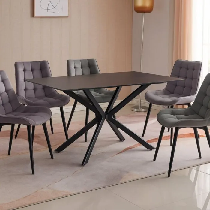 Kuhinjska jedilna miza ALEN je moderna miza v kombinaciji črnih kovinskih nog s marmor mizno ploščo, narejeno iz keramične plošče debeline 12 mm.
