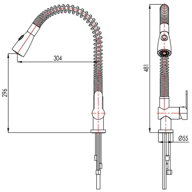 Kuhinjska pipa Blitz K325 za pomivalno korito je prožna v samem izlivu zaradi specifične oblike (vzmet). Prha se izvleče cca 80 cm stran od konca vzmeti. Na prhi je preklopnik, ki izbira način izliva in sicer skozi perlator ali razpršeno (tuš varianta).
