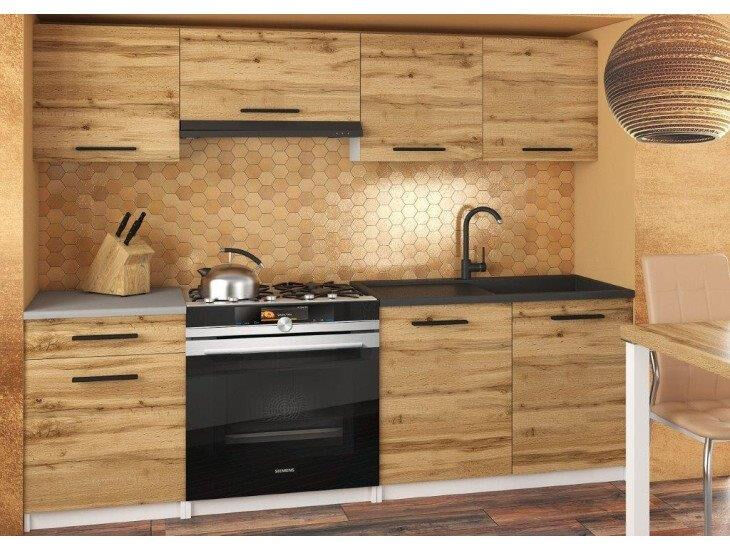 Eleganten kuhinjski blok IZY ,ki bo zagotovo osvežil vašo kuhinjo. Dobavljiv je v različnih barvah kuhinjskih elementov. Delovni pult ni v enem kosu. V ceno je vključen le leseni del kuhinje. Možnost je naročiti sistem za mehko zapiranje vrat. Predali pa nimajo možnosti mehkega zapiranja. Debelina kuhinjskega pulta je 3 cm. Vsi ročaji so v črni barvi. Globina spodnjih omaric je 45 cm.