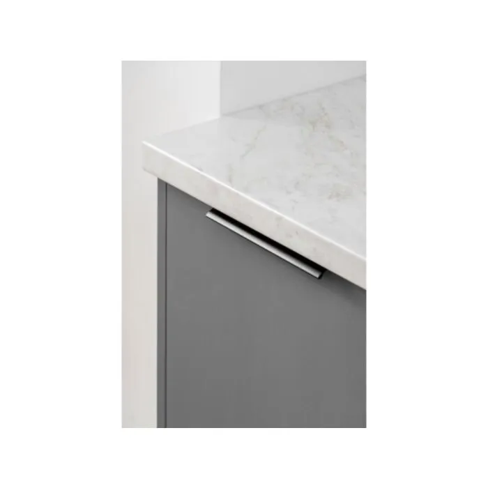 Kuhinjski blok JAGODA 240 cm z vgradnimi aparati, je modernega dizajna v sivi mat barvi. Stranice so narejene iz laminirane plošče debeline 16 mm, fronte pa debeline 18 mm. Kuhinja vsebuje ABS robove 0,8 mm ter mehko zapiranje. Predal je kovinski.Spodnje omarice imajo plastične nogice višine 10cm, ki so nastavljive na +/- 2,5 cm. Ročaji so metalni v črni barvi. Pult je debeline 38 mm v beli barvi, videz marmorja. V ceno sta vključeni 2 x dodatni spodnji stranski zaključni stranici, kakor na sliki.