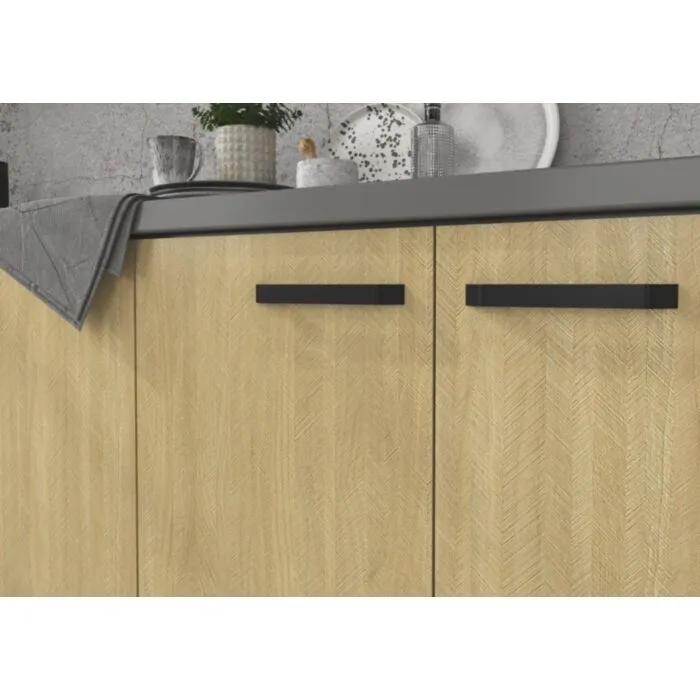 Kuhinjski blok RONA 260 2 je narejen iz kvalitetne laminirane plošče debeline 16 mm s ABS robovi. Debelina delovnega pulta je 38 mm (pult lahko dokupite po želji). Kuhinja je oblečena v dekor, kateri jo ščiti pred vlago. Prav tako imajo plošče visoko odpornost na praske. Kuhinjski blok je modernega/klasičnega videza zato se bo prilegal v vsako kuhinjo.