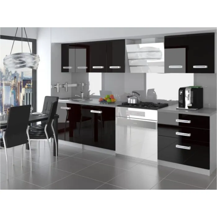 Popestrite svojo kuhinjo z modernim kuhinjskim blokom VEGA 180 v visokem sijaju. Dobavljiv je v treh različnih barvah kuhinjskih elementov. Delovni pult ni v enem kosu, omarica za korito ne vsebuje delovnega pulta.