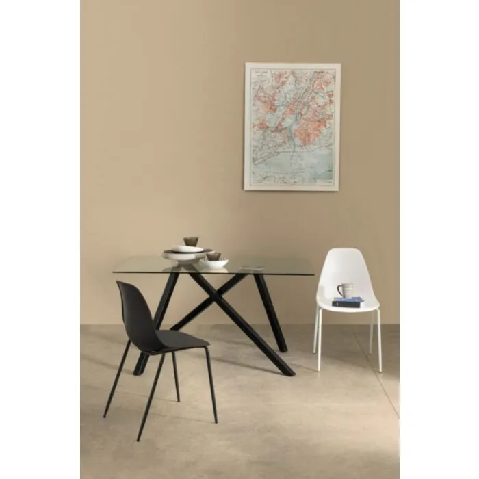 Kuhinjski stol IRI z ima noge iz jekla, naslonjalo in sedalni del pa sta plastična.