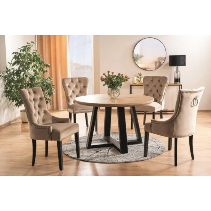 KuhinjskI stol KING bo s svojim elegantnim videzom popestril vašo jedilnico. Noge so narjene iz lesa v črni barvi, kar nudi trpežnost in dolgotrajno uporabo. Za še večje udobje je sedalni del ter naslon za hrbet oblazinjen v mehko žametno tkanino. Kuhinjski stol KING ima na hrbtišču ročaj, kar omogoča enostavno uporabo.