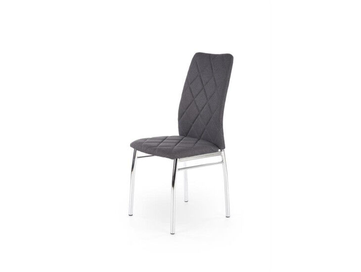 Kuhinjski stol KODA je eleganten in stilski stol za vsako jedilnico. Noge so narejene iz kovine v krom barvi. Za dodatno udobje je stol oblazinjen v tkanino katera je na voljo v treh barvah.