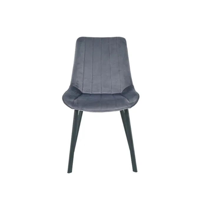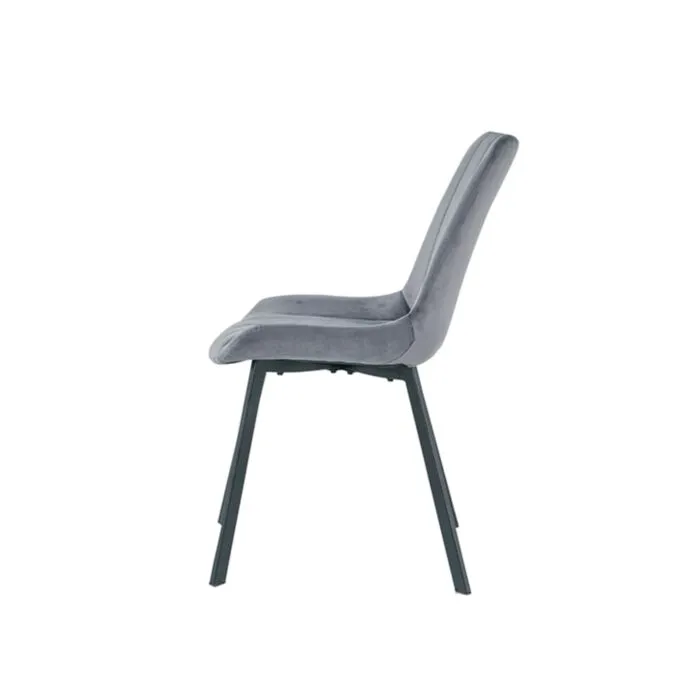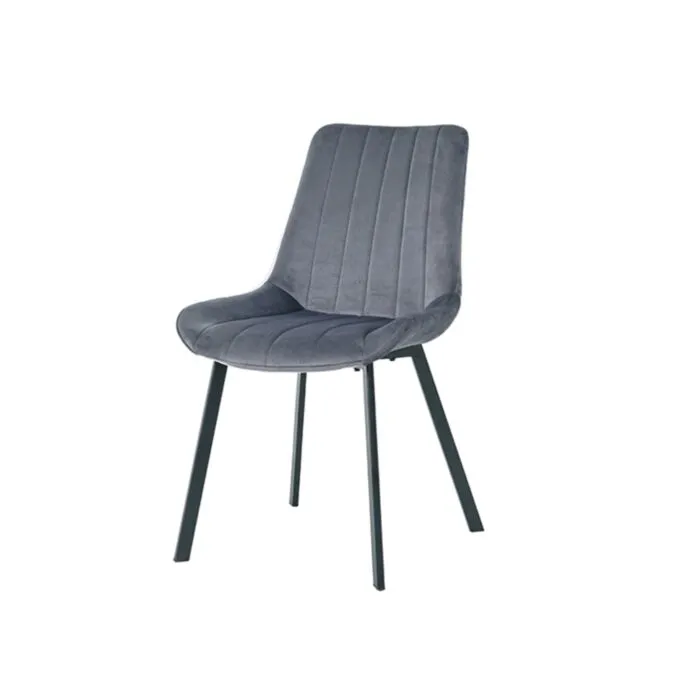 Kuhinjski stol LARA-LUX velvet siva je odlična rešitev za kombiniranje v minimalističen ali industrijski stil prostora. Kombinacija sivega prešitega blaga s črnimi kovinskimi nogami ustvari eleganco in lahkotnost. Noge so prašno barvane s debelino profila 1,2 mm. Profiliran naslon omogoča optimalen položaj sedenja ter udobje. Prešiti vzorec pa okrepi tkanino oblazinjenja in ustvari dodatno eleganco.