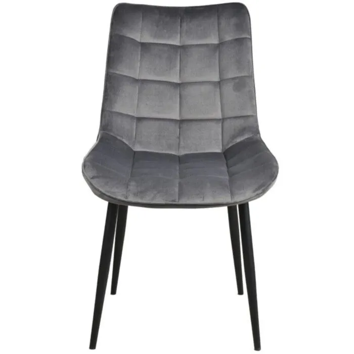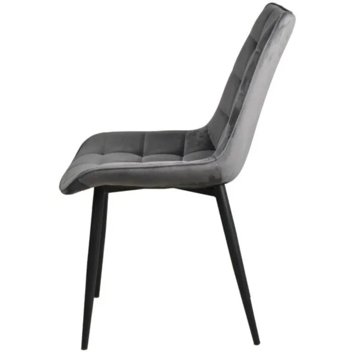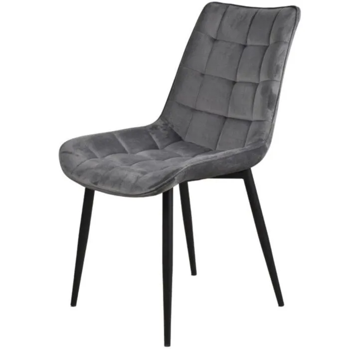 Kuhinjski stol LARA velvet siva je odlična rešitev za kombiniranje v minimalističen ali industrijski stil prostora. Kombinacija sivega prešitega blaga s črnimi kovinskimi nogami ustvari eleganco in lahkotnost. Noge so prašno barvane s debelino profila 1,2 mm. Profiliran naslon omogoča optimalen položaj sedenja ter udobje. Prešiti vzorec pa okrepi tkanino oblazinjenja in ustvari dodatno eleganco.