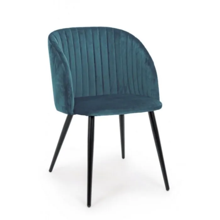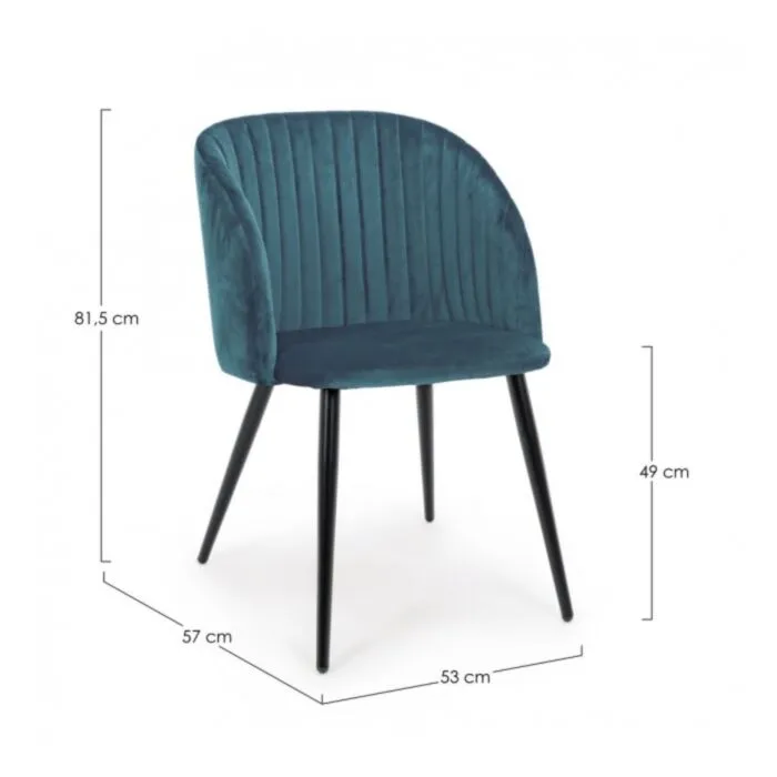 Kuhinjski stol QUEEN modra ima noge iz kovine v črni barvi. Kar daje stolu stabilnost in kakovost. Obložen je z poliuretansko peno za dodatno udobje. Pena je oblečena v mehko žametno tkanino modre barve.