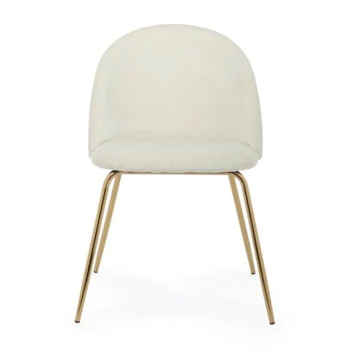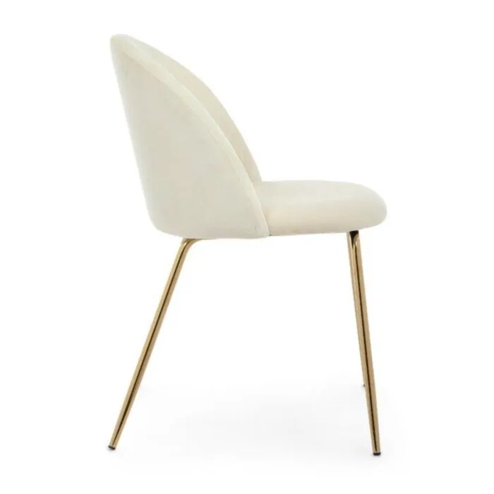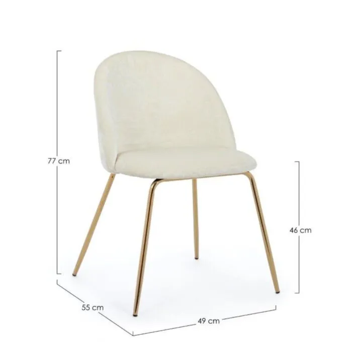 Kuhinjski stol TANYA je sestavljen iz kovinskih nog z zlatim kromiranjem, naslonjalo in sedež sta oblečena s poliuretansko peno, oblečeno v žamet (100% poliestrer).