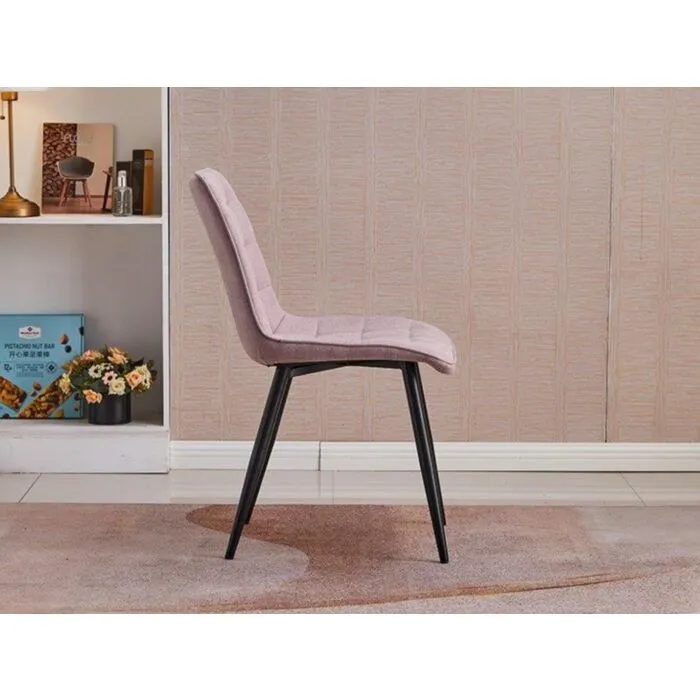 Kuhinjski stol TARIK roza blago, v kombinaciji roza prešitega blaga s črnimi kovinskimi nogami se poda v vsak ambient. Noge so prašno barvane z debelino profila 1,2 mm. Oblazinjen naslon za hrbet nudi udobje, prešiti vzorec pa stolu doda videz elegance. Stol ima kovinske noge, kar stolu daje stabilnost. Tkanina je kvalitetna in trpežna, kar omoga enostavno vzdrževanje.