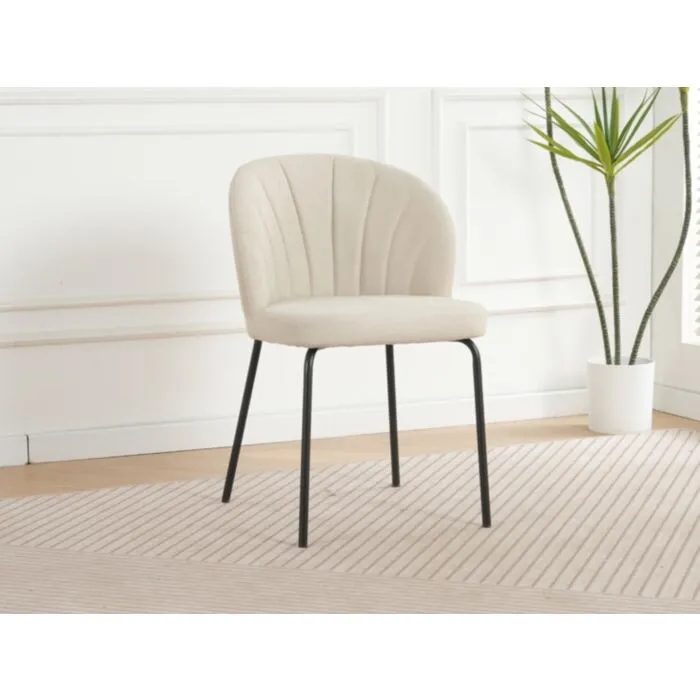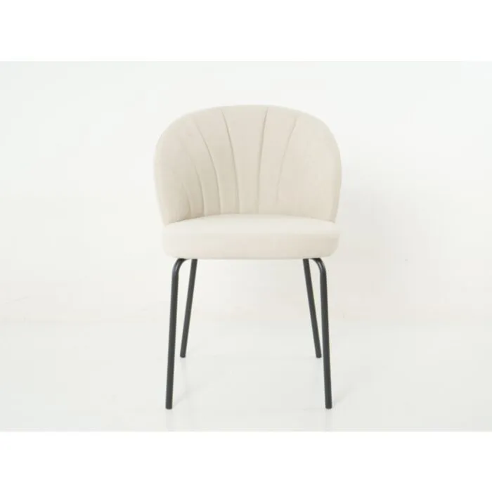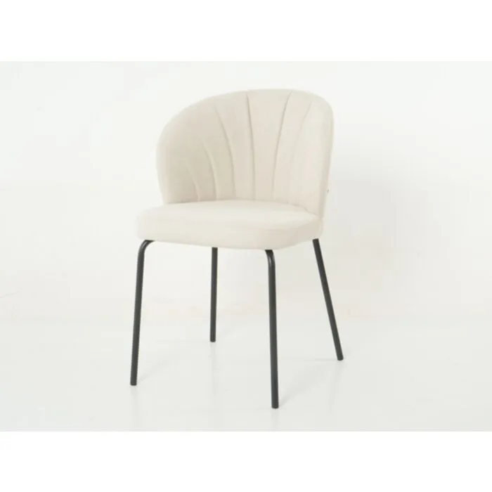 Kuhinjski stol TOMY je oblazinjen v kvalitetni beige tkanini. Močna stabilna kovinska konstrukcija mu zagotavlja vzdržljivost ter stabilnost. Kuhinjski stol TOMY je nameščen na močne črne mat kovinske noge, ki so prašno barvane s debelino profila 1,2 mm. Prav tako je naslon v notranjosti okrašen z gostimi prešiti vzorci, ki zagotavljajo moderen izgled. Stol je zaradi svojega elegantnega naslona zelo udoben za posedanje.