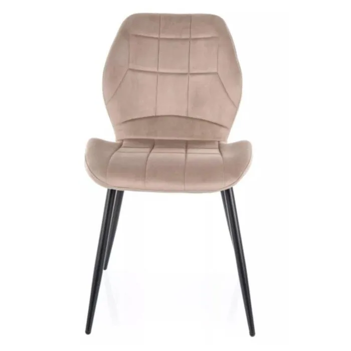 Kuhinjski stol VERACE LUX je privlačen in kvaliteten stol za vašo jedilnico s kovinskim črnim podnožjem. Kombinacija prešitega blaga s črnimi kovinskimi nogami ustvari eleganco in lahkotnost. Profiliran naslon omogoča optimalen položaj sedenja ter udobje. Prešiti vzorec pa okrepi tkanino oblazinjenja in ustvari dodatno eleganco.