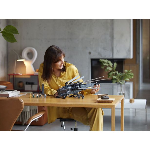 Tukaj je ideja za darilo na temo epskega filma za oboževalce Dune: LEGO Icons Dune Atreides Royal Ornithopter (10327) gradbeni komplet za odrasle.