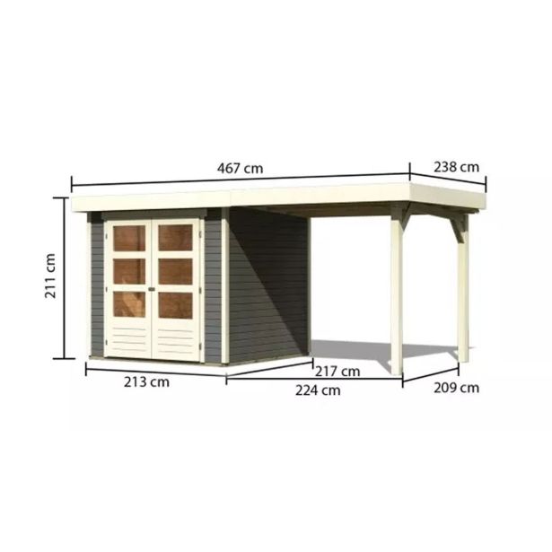 Naj bo moderna, klasična ali elegantna, vrtna hiša Askola se prilega vsakemu vrtnemu ambientu. Z zunanjimi merami (Š x G) 213 x 217 cm je idealna velikost za shranjevanje vrtnega orodja ali za ustvarjanje udobnega zatočišča na vašem vrtu. Hiša je na voljo tudi s streho v širini 1,50 m, 2,40 m ali 2,80 m . Idealno služi kot zatočišče za vrtno orodje ali kot udoben prostor za sedenje ob večerih peke na žaru. Nič ne ovira zaščitene peke na žaru na deževen poletni dan.