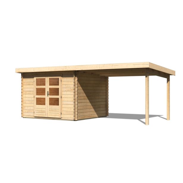 28 mm debela vrtna lopa Bastrup proizvajalca Karibu vam ponuja pametne in dobro premišljene rešitve za namestitev vašega vrtnega orodja ali kot prostor za dobro počutje. Predelan smrekov les prihaja s severa in je zato posebej odporen na spremenljive vremenske razmere in vlago. Konstrukcija temelji na posameznih 28 mm blok deskah za samomontažo, ki omogočajo hitro in enostavno montažo. Zahvaljujoč popolnemu prileganju in rezkanju profila je vodoodbojen in ščiti vašo vrtno hiško pred dežjem. Zunanji patentirani vogalni spoji, močni kot 6 x 4 cm kvadratni les, pokrivajo samosestavljene spojne robove in tako nudijo zaščito pred vetrom in dežjem.