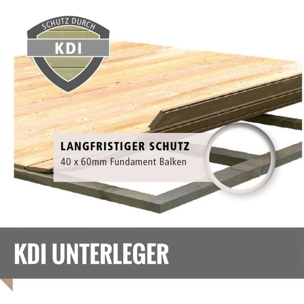 Vrtna hišica je izdelana iz plošč debeline 19 mm, izdelanih iz nordijske smreke v sistemu vtičnikov / vijakov in tako zagotavlja preprosto montažo. Ravna streha je sestavljena iz strešnika, tako da je vrtna hišica od zgoraj hitro zaščitena pred vremenskimi vplivi. Osnovna površina je 6,35 kvadratnih metrov oz. 12,8 cbm. S stransko višino 195 cm in višino slemena 211 cm nudi vrtna lopa optimalno izrabo prostora. Vrtna hišica brez podaljškov ima osnovno mero 298 cm x 213 cm. Talne grede zagotavljajo zaščito od spodaj in so postavljene pod vrtno lopo. Zahvaljujoč impregnaciji je hišica zaščitena pred vremenskimi vplivi in plesnijo. Praktična in vnaprej sestavljena vrata s svojimi velikimi dimenzijami in okvirjem iz masivnega lesa zagotavljajo enostaven dostop do vrtne lope in učinkovito varujejo vsebino pred nepooblaščenim dostopom. Zasteklene odprtine na vratih zagotavljajo obilico svetlobe.Lesene hiške niso impregnirane, zato je impregnacija potrebna s strani kupca, le temelji so impregnirani z impregnacijskimi solmi, pod visokim pritiskom. Hiške ne vključujejo vodo odporne kritine, vključujejo le leseno streho. Prav tako niso vključena tla, ki so morda prikazana na simbolnih slikah. Tla je mogoče donaročiti.
