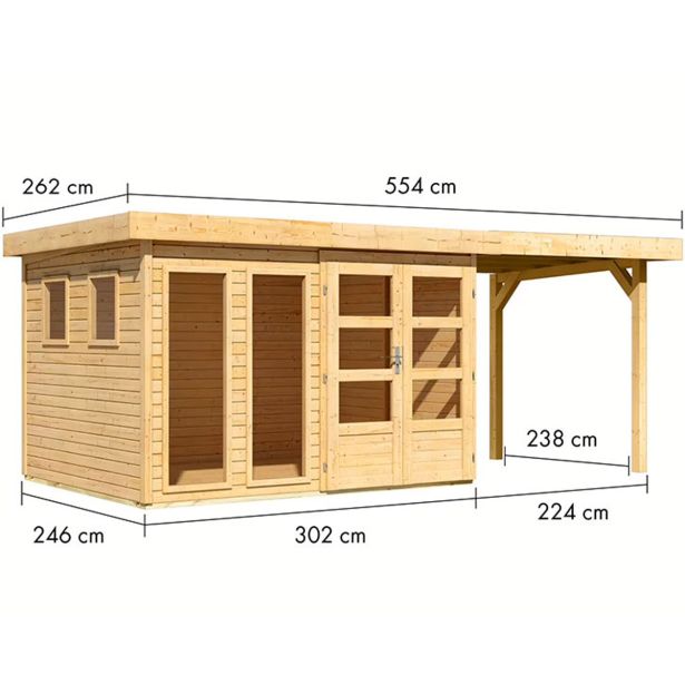 LESENA VRTNA HIŠKA KARIBU LAHAR 5 + PODALJŠEK STREHE ŠIRINE 2.40 M