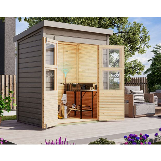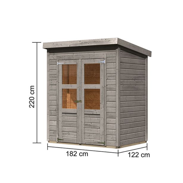Potrebujete prostor za svoje vrtno orodje, kolesa ali otroška zunanja igrala? Nato si pobliže oglejte vrtno hišo Merseburg. Ta lopa za orodje iz nordijske smreke je majhna in kompaktna, a še vedno ponuja veliko prostora za shranjevanje vsega vašega vrtnega orodja.