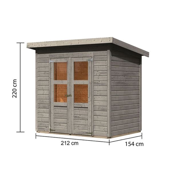 Potrebujete prostor za svoje vrtno orodje, kolesa ali otroška zunanja igrala? Nato si pobližje oglejte vrtno hišo Merseburg. Ta lopa za orodje iz nordijske smreke je majhna in kompaktna, a še vedno ponuja veliko prostora za shranjevanje vsega vašega vrtnega orodja.