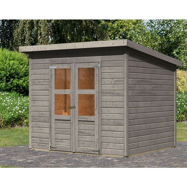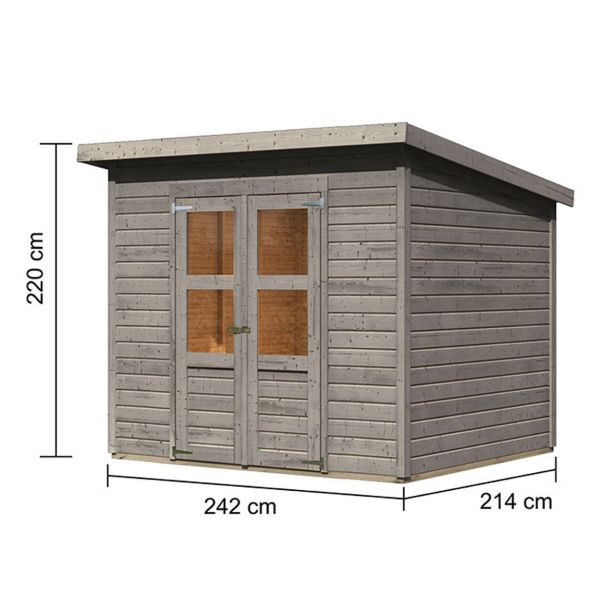odel Merseburg 5 je na voljo v atraktivni, predhodno sivi različici, ki posnema naravno prefinjenost srebrno sive patine. Dvojna vrata imajo udobno širino in velikodušen izrez za svetlobo zagotavlja dobro svetlobo v notranjosti. Za zaščito vaše lastnine so vrata opremljena z varnostnim zapahom.