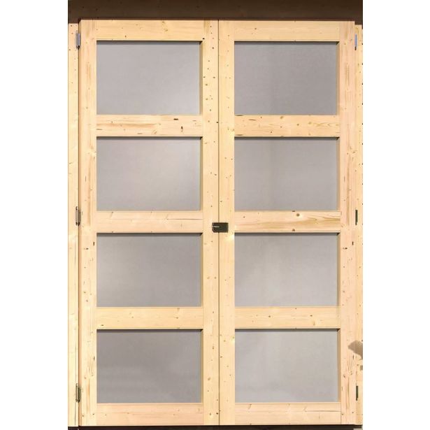 Majhno sobo lahko na primer uporabite kot shrambo za vrtno orodje, večjo sobo pa oblikujete kot majhno obrtno delavnico. Tukaj ni omejitev za vašo domišljijo. Veliko sobo zapirajo dvokrilna vrata, majhno sobo pa enokrilna vrata s 4 svetlobnimi izrezi v videzu motnega stekla na vratno krilo in varnostnimi zaponkami na vratih. To ščiti vaše predmete v notranjosti pred nepooblaščeno krajo.