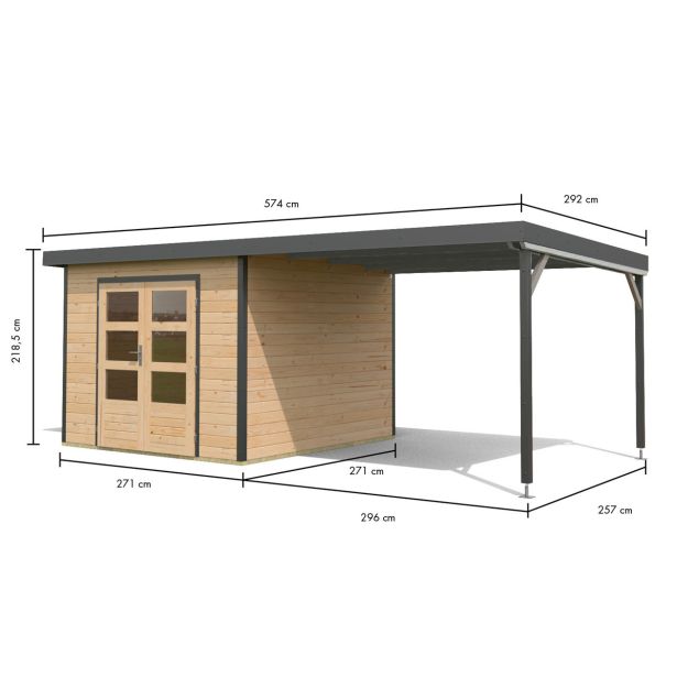 LESENA VRTNA HIŠKA KARIBU PLUTO A+ PODALJŠEK STREHE 3M, ANTRACIT
